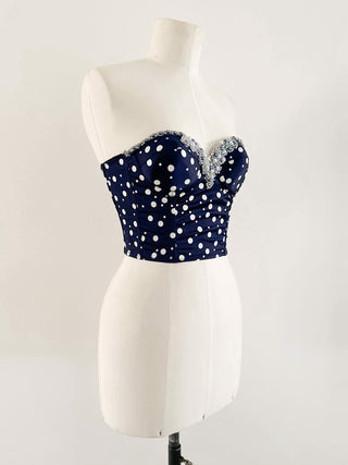 BLUE & WHITE POLKADOT PEARL BUSTIER - 70C/75B