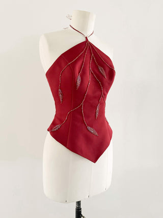RED SWAROVSKI FLORAL HALTER CORSET - L, EU 42