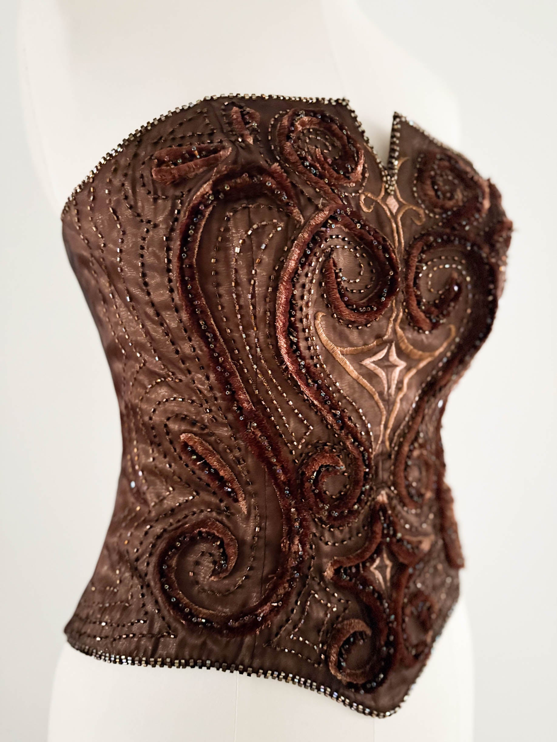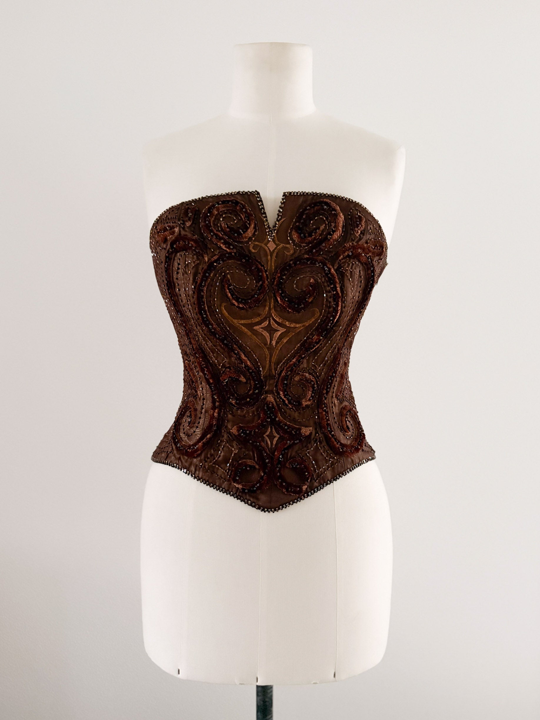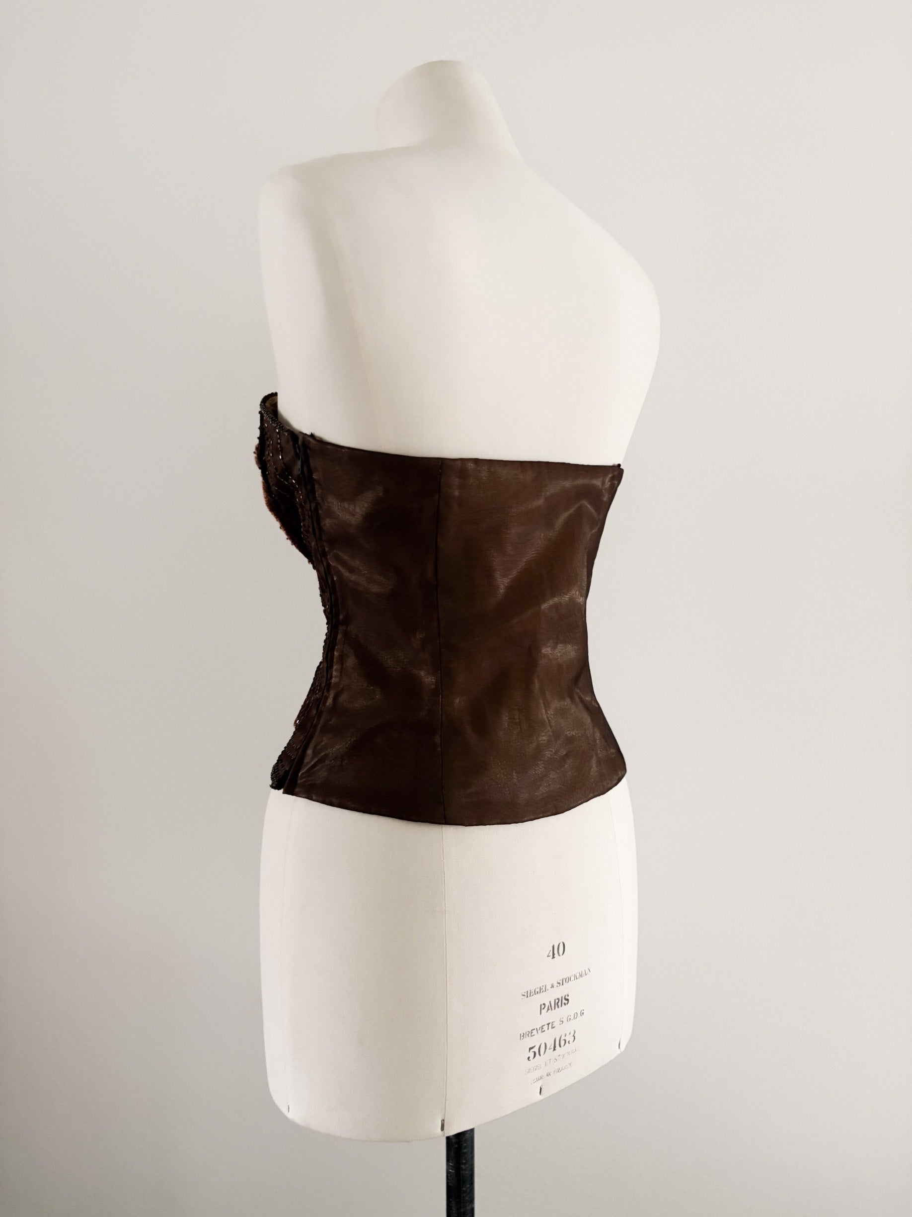 BROWN VELVET STRASS CORSET (L, EU 40)